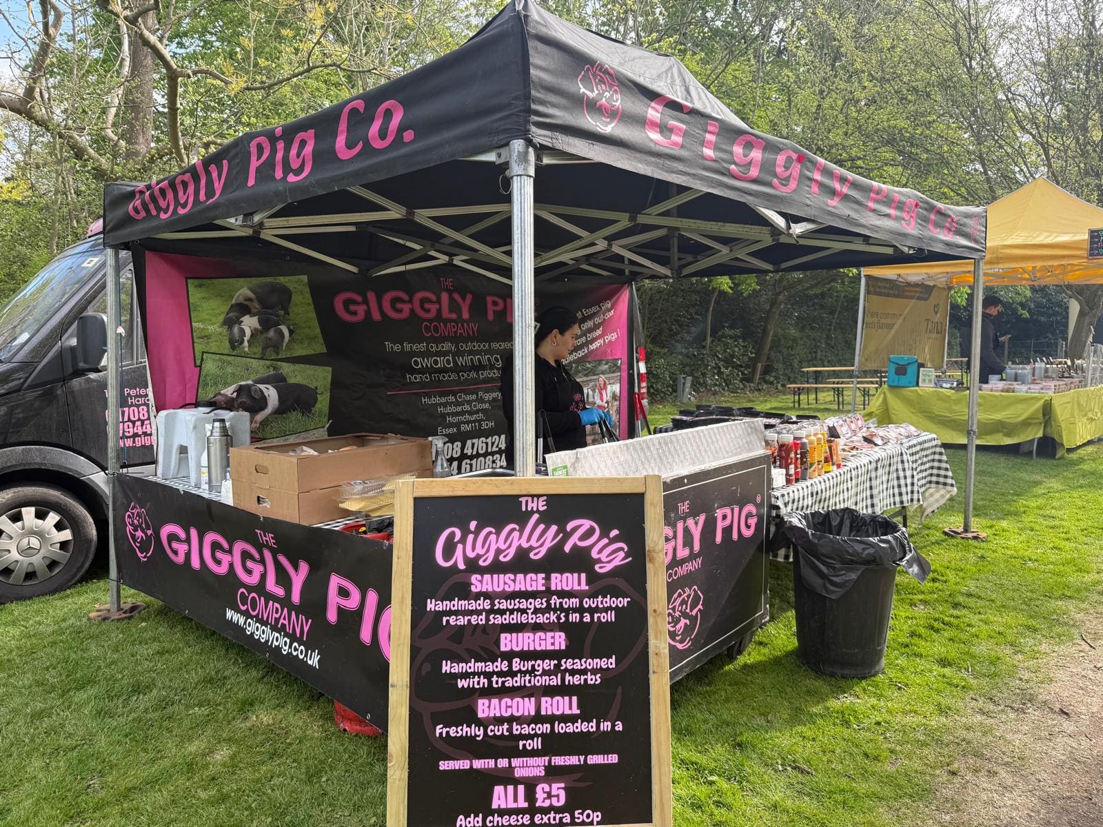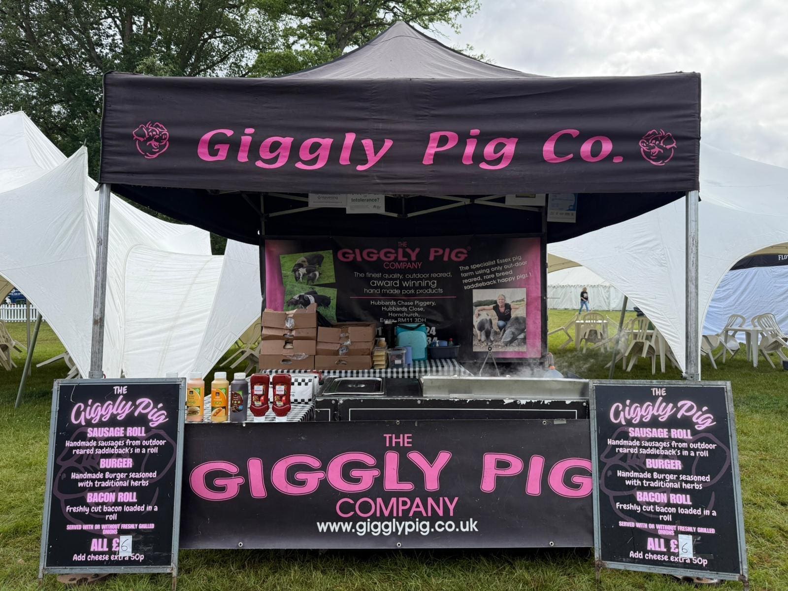 Browse our gallery to discover how The Giggly Pig Company brings flavour and flair to both market stalls and events across Hornchurch. From our mobile catering service to the fresh, locally sourced produce at our stalls, we are dedicated to offering only the finest ingredients. Our free-range Saddleback pork, alongside mouth-watering barbecues, canapés, and more, showcases the exceptional quality of what we serve. Each photo reflects our passion for delivering high-quality food and service. Whether you're hosting an event or visiting our stall, let our gallery inspire your next culinary experience.